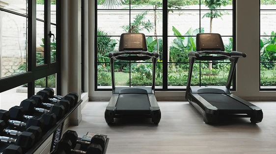 Stay active with our compact fitness room, light, breezy, and energizing.