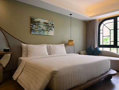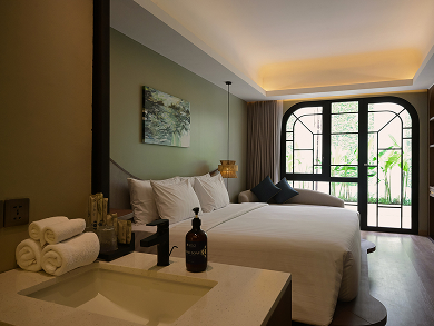 Steps away from the water, the Deluxe Poolside Room blends comfort and tropical charm. With easy pool access and modern amenities, it’s perfect for a relaxing and refreshing stay.